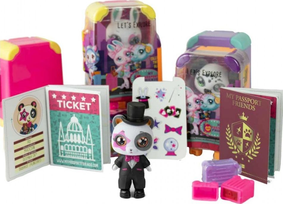 Wszystkie figurki są pokryte materiałem, mają zdejmowane elementy ( ubiór, akcesoria) , zestaw zawiera oprócz figurki : walizkę z kółkami, stempel oraz paszport)
