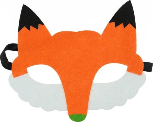Maska dziecięca wykonana z grubego filcu w kształcie pyszczka lisa. Maska posiada wycięte otwory na oczy oraz przestrzeń w okolicy nosa umożliwiając wygodne noszenie. Wyposażona została w elastyczną gumkę zapewniającą komfortowe zakładanie oraz zdejmowanie maski. Doskonała jako uzupełnienie stylizacji, przebrania na urodziny, teatrzyki, bale przebierańców.