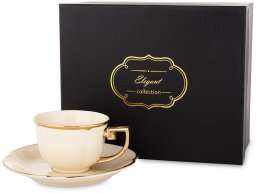Poreclana Elegant to różnorodność asortymentu do wyposażenia domu oraz idealny pomysł na upominek dla bliskiej osoby. Filiżanki i kubki z serii Elegant to wyjątkowe produkty o wysokiej jakości zapakowane w kartoniki wykonane z twardej, oklejonej tektury o motywie przykrywki opakowania, identycznym z motywem ceramiki. Porcelana Elegant może być pięknym i dekoracyjnym elementem każdym półki czy witrynki o delikatnym charakterze kolekcjonerskim. Produkty wykonane z ceramiki mogą nieznacznie różnić się między sobą odcieniami, rozmiarem oraz strukturą. Wynika to ze specyfiku produktu i jest dopuszczalne przez odpowiednie normy