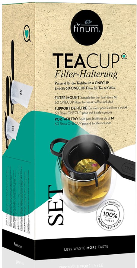 Zestaw do filiżanki Finum TeaCup Set to doskonałe rozwiązanie dla entuzjastów herbaty i kawy, którzy cenią sobie wygodę oraz wysoką jakość. W skład zestawu wchodzi wielokrotnego użytku uchwyt na filtry oraz 60 kompostowalnych filtrów ONECUP*, które świetnie sprawdzą się zarówno przy parzeniu herbaty, jak i kawy. Dzięki innowacyjnemu projektowi, uchwyt pewnie trzyma otwarty filtr, co ułatwia wsypywanie naparu i zapewnia równomierne zaparzanie.