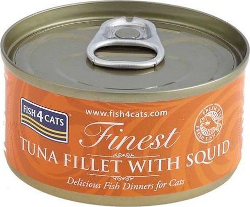 Fish4Cats Filety Tuńczyka z Kałamarnicami, zostały zrobione z najlepszych składników. Zadowolą nawet najbardziej wybredne koty. Ryby zawierają duże ilości kwasów Omega 3, co wpływa na zdrowie skóry i wygląd sierści. Ryba ma także łatwo przyswajalne białko.