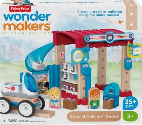 Dzięki temu zestawowi konstrukcyjnemu z linii Wonder Makers™ przedszkolaki zbudują własny budynek poczty, w którym mogą spychać paczki po rampie, ładować je na ciężarówkę i przygotowywać do dostarczenia! Zestaw zawiera ponad 35 wielofunkcyjnych elementów, aby dzieci realizowały różne projekty, wykorzystując te same elementy do tworzenia budynku lub torów dla pojazdów. Możliwości jest tak wiele, że dzieci mogą za każdym razem budować zupełnie inną wersję poczty i bawić się na różne sposoby! Zabawa, która rozwija. Kreatywność i wyobraźnia: dzieci rozwijają swoją kreatywność, konstruując własną pocztę i odgrywając historyjki. Projektowanie i budowanie: przedszkolaki ćwiczą umiejętność projektowania i budowania, wznosząc coraz to inne wersje budynku poczty i łącząc elementy zestawów w różnych konfiguracjach!