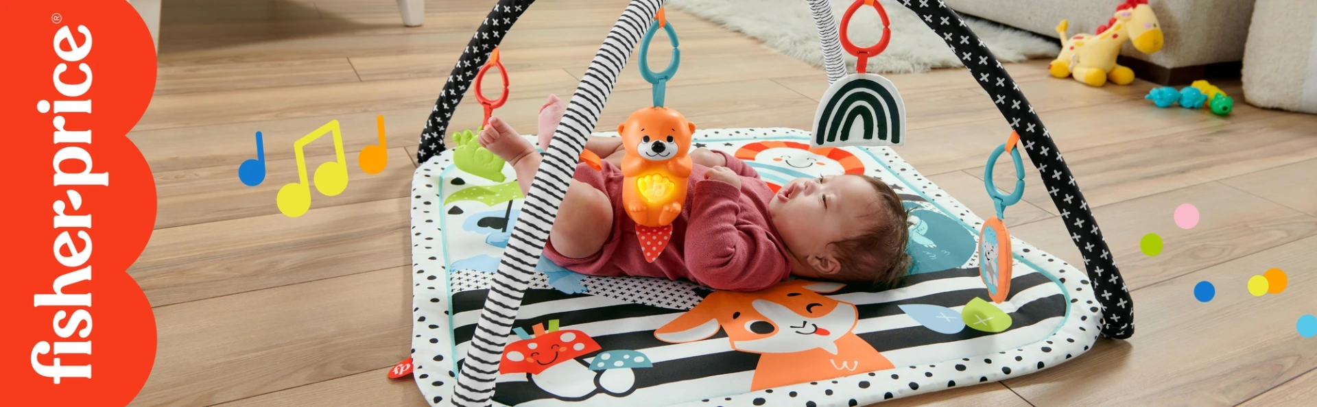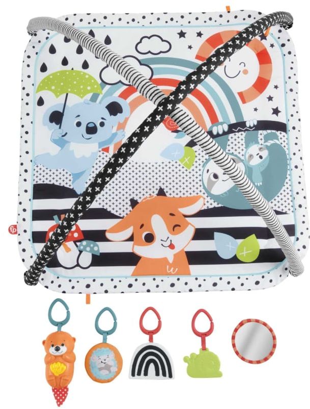 Zabawa Twojego malucha może być jeszcze lepsza dzięki Muzycznej macie edukacyjnej 3 w 1 „Rośnij ze mną” od Fisher-Price. Odczepiana wyderka ma dwa ustawienia: krótkie i długie odtwarzanie, z nawet 15 minutami muzyki i łagodnym światełkiem. Cztery dodatkowe zabawki aktywizujące zapewniają małym rączkom doskonałe zajęcie, gdy maluszek odpoczywa i bawi się na mięciutkiej macie (którą można prać w pralce). Dodatkowo kontrastowe kolory maty pomagają rozwijać wzrok dziecka.