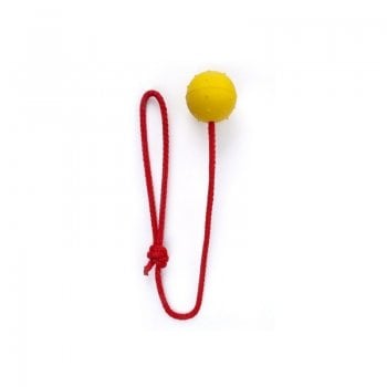 Piłka aportowa ze sznurkiem. Świetnie sprawdza się do aportowania. Wykonana z wyskiej jakości materiałów bezpiecznych dla zwierząt. Gwarantuje świetna zabawę z pupilem. Dodatkowo piłka nadaje sie również do zabawy we wodzie, ponieważ nie tonie.