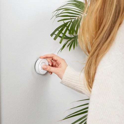 Flic Twist charakteryzuje się nowoczesnym, minimalistycznym designem o wymiarach 64 x 21 mm, co pozwala na łatwe wkomponowanie go w wystrój wnętrza. Możesz umieścić go w dowolnym miejscu, co zwiększa wygodę użytkowania oraz estetykę Twojego domu.