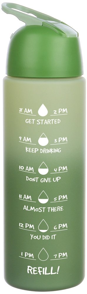 Butelka na wodę Morella Green* Florina o pojemności 700 ml to znakomity wybór dla osób aktywnych, które pragną dbać o odpowiednie nawodnienie w ciągu dnia. Wykonana z wytrzymałych materiałów, jest lekka i odporna na uszkodzenia, co czyni ją idealną do użytku w różnych warunkach, takich jak siłownia, biuro czy podczas aktywności na świeżym powietrzu. Butelka wyróżnia się unikalnym gradientowym designem oraz motywacyjnymi oznaczeniami godzinowymi, które ułatwiają kontrolowanie ilości wypijanej wody.