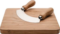 W zestawie znajdziesz również bambusową deskę, która jest odporna na działanie wilgoci. Deska nie wchłania barwników ani zapachów. Wgłębienie znajdujące się na środku deski ułatwia siekanie cebuli lub rozdrabnianie szczypiorku.