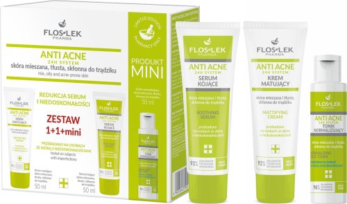 Floslek FLOSLEK Zestaw prezentowy Anti Acne Krem matujacy + Serum kojące + Tonik normalizujący