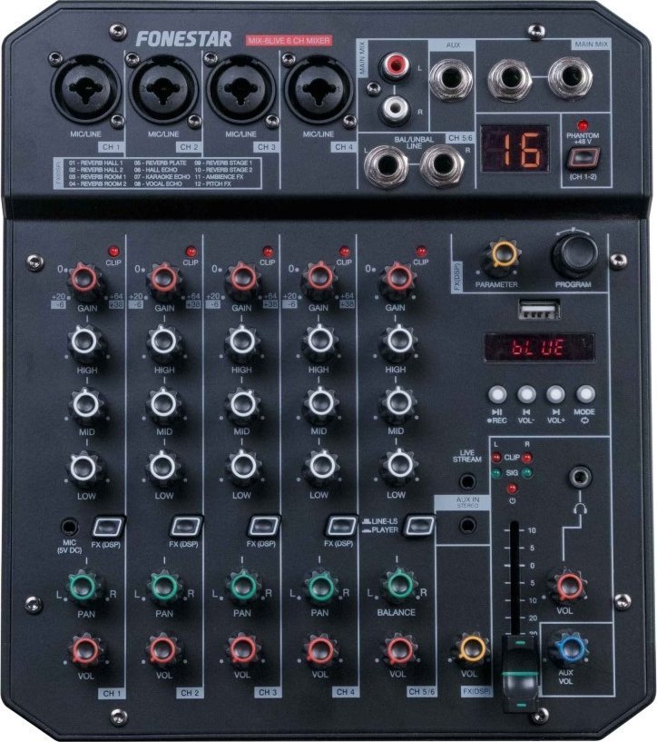 Fonestar MIX-6LIVE - 6-kanałowy mikser stereo z funkcją przesyłania strumieniowego na żywo