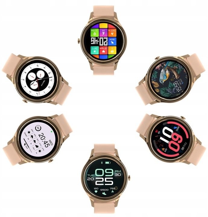 Smartwatch oferuje możliwość personalizacji tarczy oraz wymiany pasków. W zestawie znajdują się zarówno elegancka bransoleta mesh, jak i sportowy silikonowy pasek, co pozwala na dostosowanie wyglądu zegarka do różnych okazji.