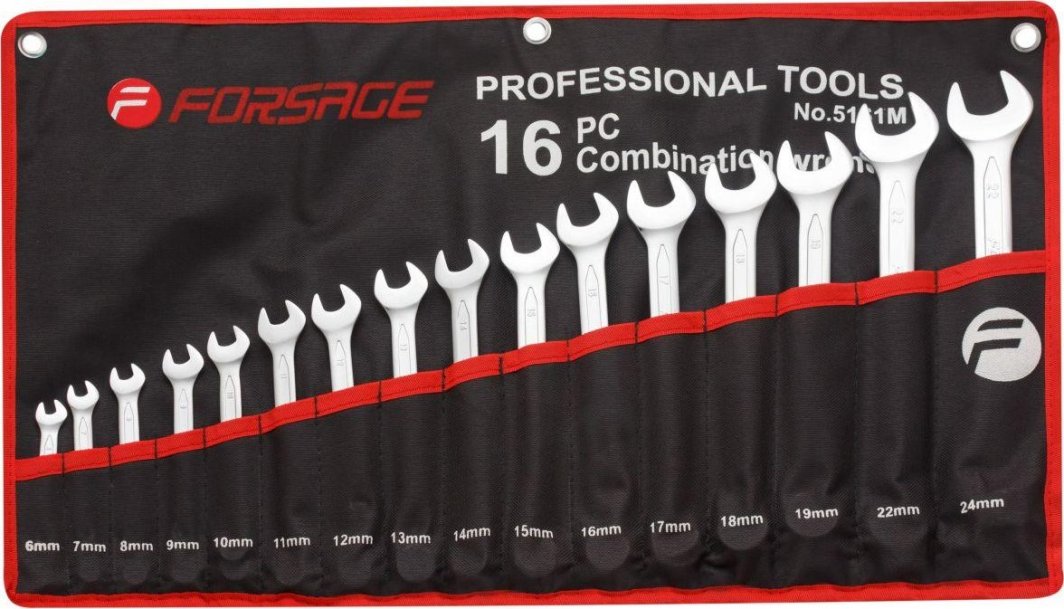Forsage Zestaw kluczy płasko-oczkowych 16el. (6-24mm) na płótnie