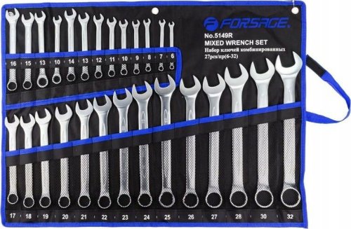 Forsage Zestaw kluczy płasko-oczkowych 27el. (6-32mm) na płótnie (2 z grzechotką)