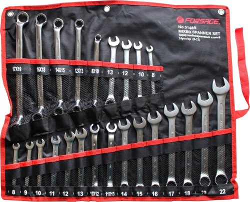 Forsage Zestaw kluczy płasko-oczkowych, oczkowych i oczkowych rozciętych 24el. (8-22mm) na płótnie