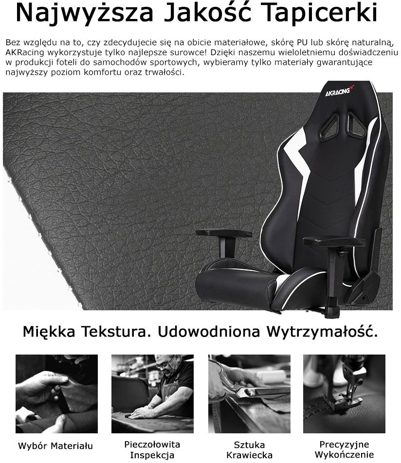 Dzięki modelowi SX, wyposażonemu w tapicerkę wykonanej z wysokiej jakości skóry oraz wszystkie inne niezbędne cechy, krzesła do gier AKRacing osiągają nowy poziom. Jego minimalistyczna estetyka jest zunifikowana z najwyższej jakości materiałami i regulowanymi pod wieloma względami poduszkami i podłokietnikami. SX gwarantuje doskonały komfort nawet podczas długich sesji gier lub sesji roboczych - na przestrzeni wielu lat.