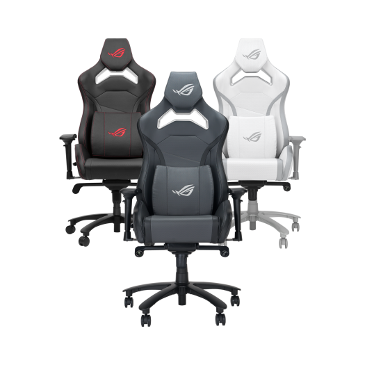 Fotel gamingowy ROG Chariot X Core w stylu samochodu wyścigowego, wyposażony w regulowany zagłówek z pianki o dużej gęstości, podparcie lędźwiowe z pianki zapamiętującej kształt, podłokietniki 4D, mechanizm odchylania, wytrzymały podnośnik gazowy klasy 4 oraz wytrzymałą, najwyższej jakości skórę PU, co gwarantuje doskonałe wrażenia podczas gry.