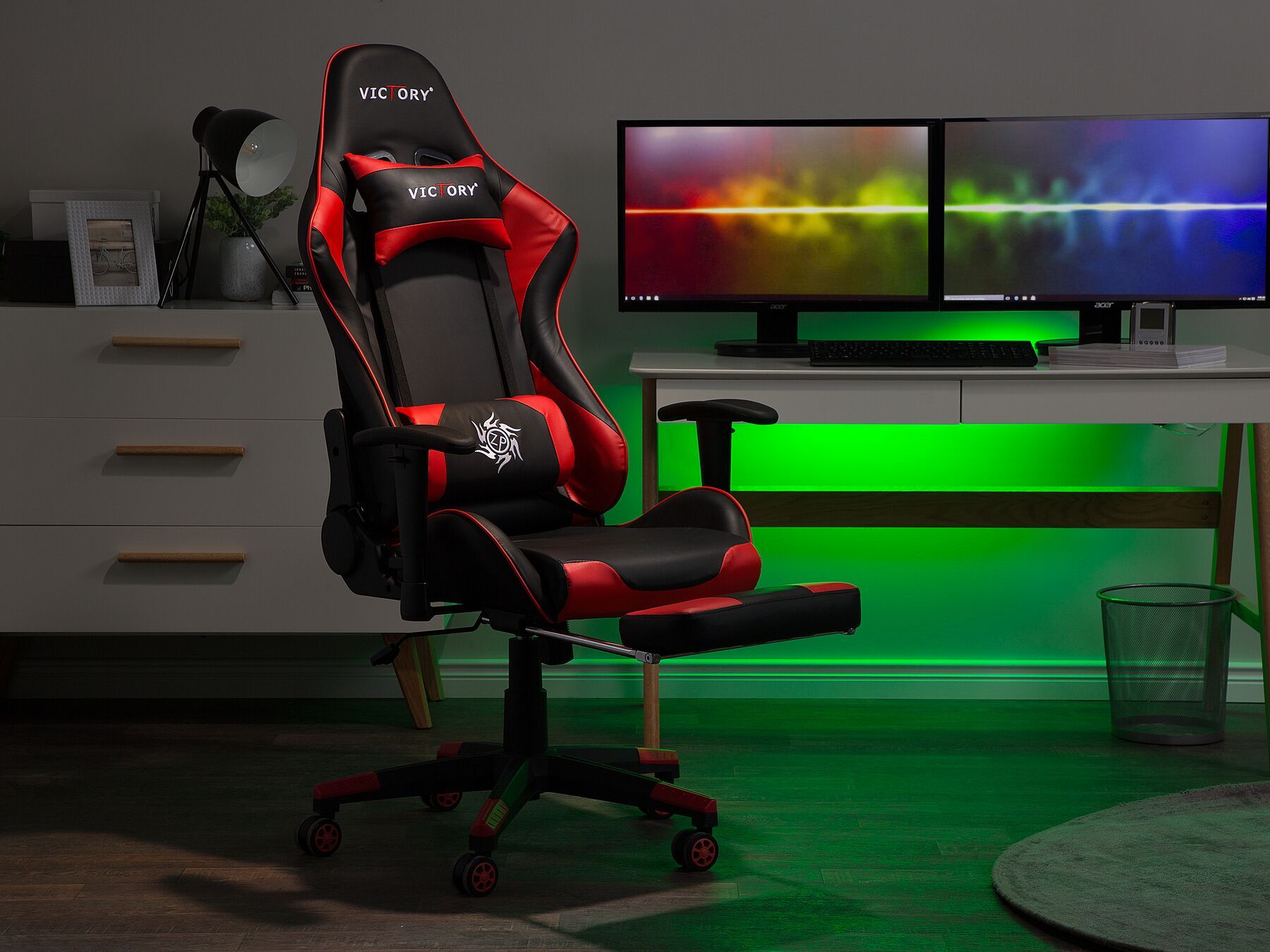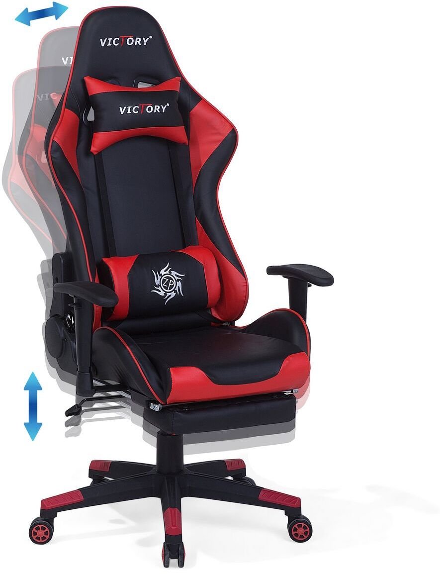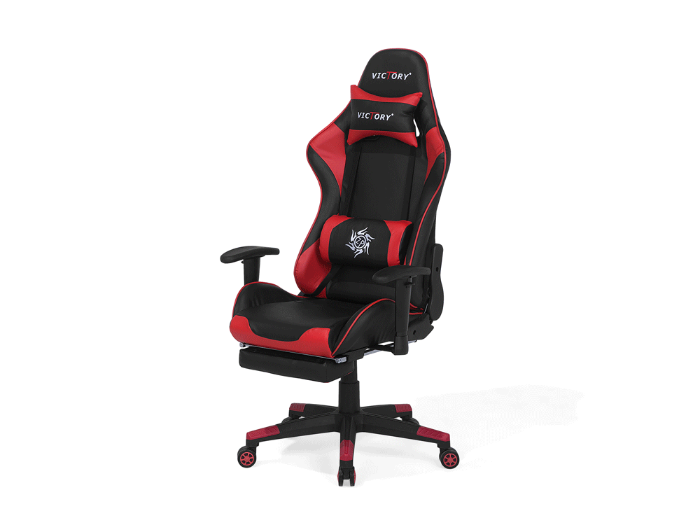 Praktyczny i ergonomiczny fotel gamingowy to podstawa przy długim korzystaniu z komputera. Regulowane krzesło biurowe VICTORY wykonane jest z przyjemnego w dotyku materiału. Elegancki czarno-czerwony design zachwyca wygodą użytkowania. Poduszki umieszczone na elastycznych paskach na wysokości głowy i lędźwi pozwalają zmniejszyć zmęczenie tych partii ciała.