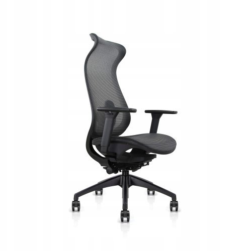 Fotel wyposażony jest w regulowane podłokietniki 3D, które można dostosować w trzech płaszczyznach: obrót, wysokość oraz wysuw przód-tył. Taka funkcjonalność minimalizuje ból nadgarstków i zwiększa komfort podczas długotrwałej pracy.