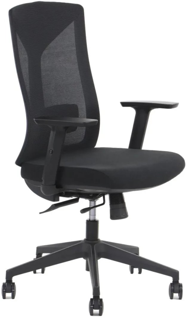 Fotel biurowy HAGER z mechanizmem synchronicznym Fotel biurowy HAGER to model, który doskonale sprawdzi się w przestrzeni biurowej zapewniając odpowiednie podparcie dla ciała w czasie wielogodzinnej pracy przy biurku lub przed komputerem. Ten fotel do komputera będzie również świetnym wyborem do domu, gdyż zastosowane w nim mechanizmy i możliwości regulacji pozwalają na dostosowanie fotela do potrzeb każdego użytkownika. Oparcie fotela pokryte jest wytrzymałą i przewiewną tkaniną siatkową o czarnej barwie, siedzisko natomiast pokrywa czarna tkanina materiałowa. Dużym atutem fotela jest wypełnienie siedziska z pianki wtryskowej o wysokiej gęstości (60 kg/m3), co sprawia, że wyróżnia się ona dużą odpornością na odkształcenia. W oparciu fotela do biurka znajduje się podparcie dla odcinka lędźwiowego, które można regulować na wysokość. Fotel biurowy HAGER wyposażony został w regulowane podłokietniki oraz mechanizm SYNCHRONICZNY umożliwiający blokadę odchyłu oparcia w kilku pozycjach. Dodatkowo mechanizm ten pozwala na swobodne kołysanie się, obracanie, a także płynną regulację wysokości siedziska. Funkcja anti-shock chroni użytkownika przed uderzeniem oparcia w plecy po zwolnieniu blokady. Ten model fotela posiada też regulację wysuwu siedziska. Podstawa jezdna fotela z czarnego nylonu zaopatrzona jest w komplet kółek z powłoką kauczukową, które nie rysują powierzchni podłóg z paneli oraz płytek. Cechy produktu wygodny fotel do komputera, siedzisko tapicerowane tkaniną oparcie pokryte tkaniną siatkową, regulacja wysokości podparcia odcinka lędźwiowego, regulacja wysuwu siedziska, mechanizm SYNCHRONICZNY z blokadą oparcia w kilku pozycjach, swobodne kołysanie się i obracanie, płynna regulacja wysokości siedziska, regulacja siły oporu mechanizmu synchronicznego, funkcja "anti-shock" chroniąca przed uderzeniem oparcia w plecy po zwolnieniu blokady, regulowane podłokietniki z miękkimi nakładkami, podstawa z czarnego nylonu, kółka do paneli i płytek w zestawie, fotel posiada atest badań wytrzymałościowych, do samodzielnego montażu, w swojej ofercie posiadamy szeroki wybór mebli pozwalających na kompleksowe wyposażenie mieszkania