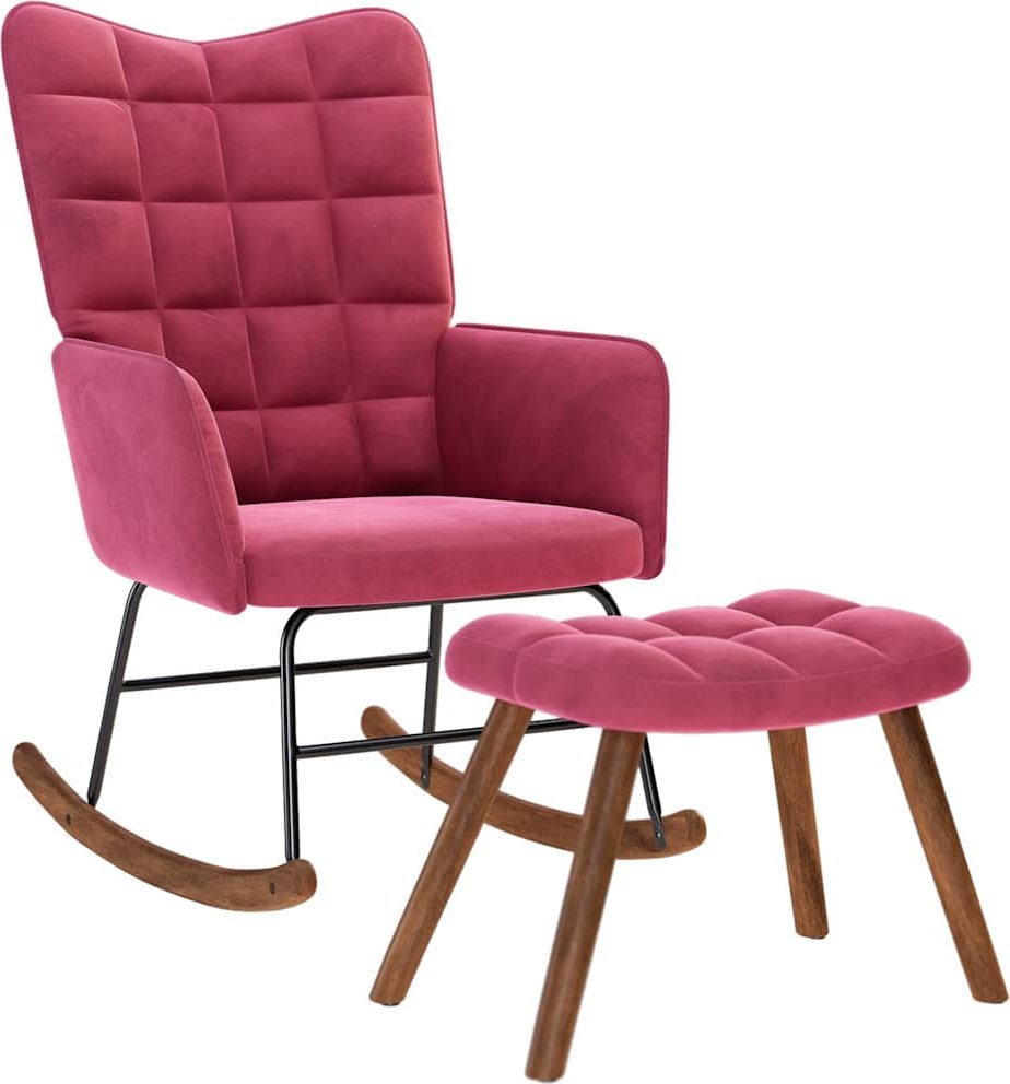 Fotel bujany ze stołkiem w kolorze czerwonego wina aksamitu