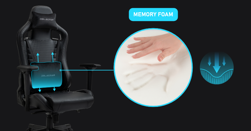 PODUSZKA LĘDŹWIOWA Z MEMORY FOAM I REGULACJĄ WYSOKOŚCIJakość podparcia odcinka lędźwiowego kręgosłupa to jedna z najważniejszych cech dobrego fotela, gdyż przekłada się bezpośrednio na komfort siedzenia przez wiele godzin i tego, jak bardzo odczuje to nasz kręgosłup. Za tę jakość odpowiada w modelu G 808 duża poduszka pod odcinek lędźwiowy. Poduszka została wypełniona pianką MEMORY FOAM i pod wpływem nacisku i ciepła optymalnie dopasuje się do Twoich pleców. Możesz dowolnie regulować jej wysokość. Zalecana szczególnie dla niskich odchyleń oparcia (standardowa pozycja przy biurku), natomiast przy większym odchyleniu oparcia do tyłu można ją odczepić. | ![]() | ||||||||||||||||||||||||||||||||||||||