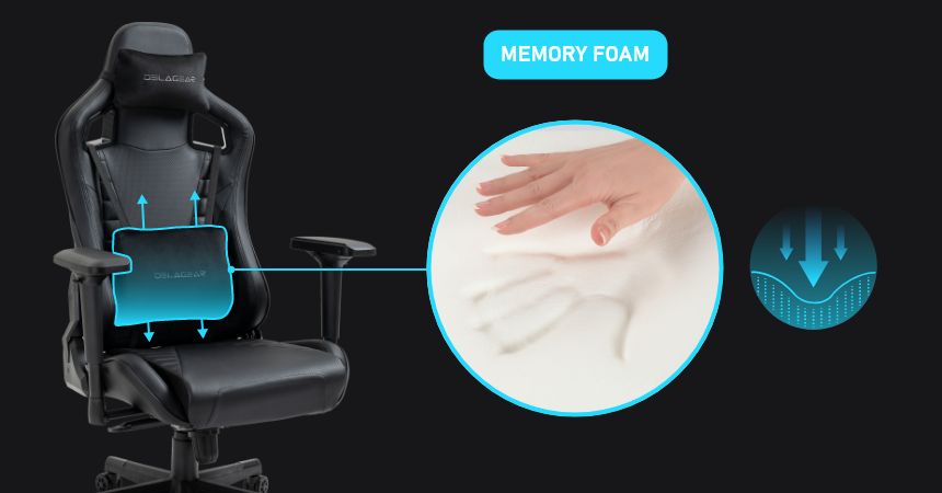 PODUSZKA LĘDŹWIOWA Z MEMORY FOAM I REGULACJĄ WYSOKOŚCIJakość podparcia odcinka lędźwiowego kręgosłupa to jedna z najważniejszych cech dobrego fotela, gdyż przekłada się bezpośrednio na komfort siedzenia przez wiele godzin i tego, jak bardzo odczuje to nasz kręgosłup. Za tę jakość odpowiada w modelu G 808 duża poduszka pod odcinek lędźwiowy. Poduszka została wypełniona pianką MEMORY FOAM i pod wpływem nacisku i ciepła optymalnie dopasuje się do Twoich pleców. Możesz dowolnie regulować jej wysokość. Zalecana szczególnie dla niskich odchyleń oparcia (standardowa pozycja przy biurku), natomiast przy większym odchyleniu oparcia do tyłu można ją odczepić. | ![]() | ||||||||||||||||||||||||||||||||||||||