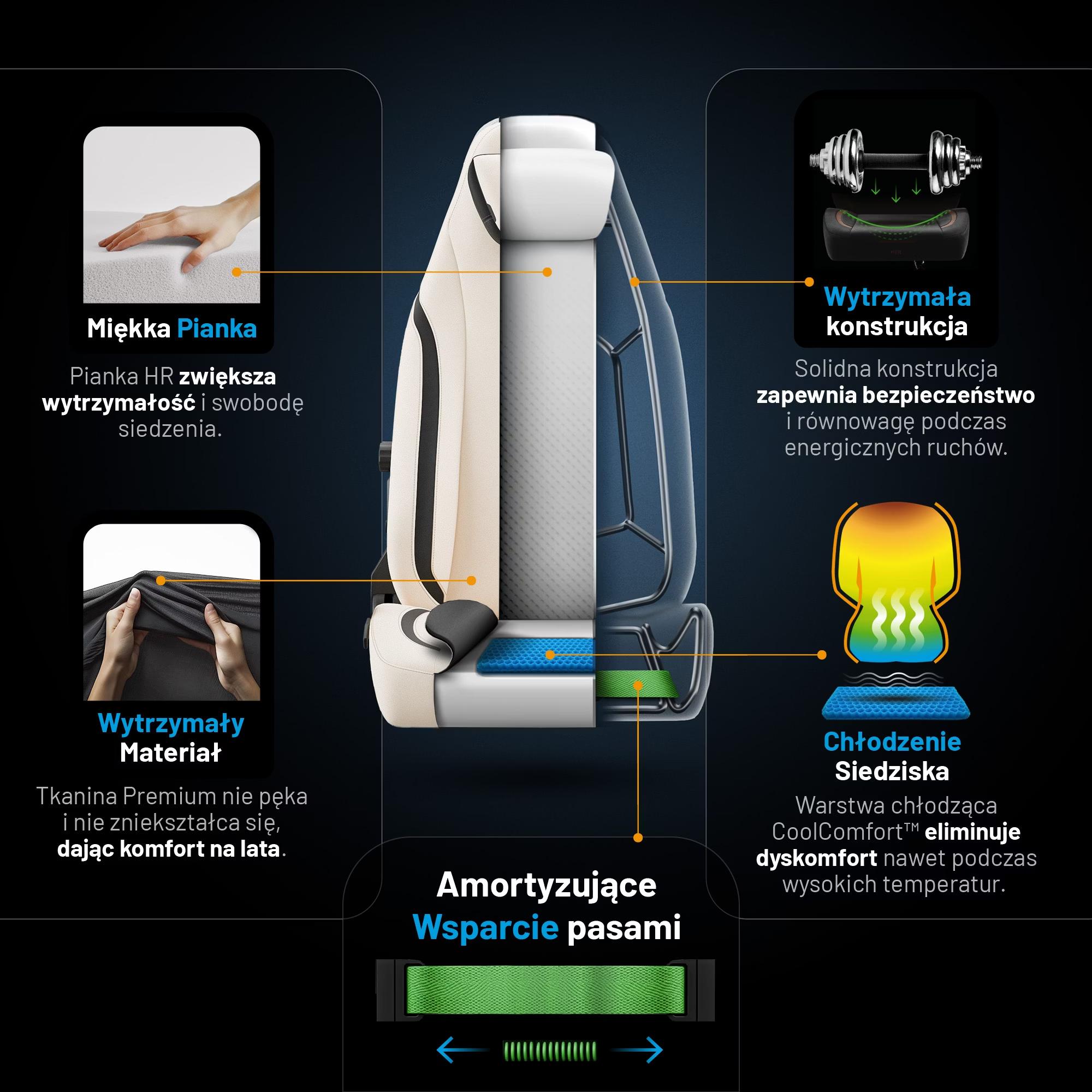Starannie dopracowana technologia CoolComfort™ gwarantuje orzeźwiający komfort już od pierwszych chwil spędzonych w fotelu. Siedzisko zapewnia niezakłócony przepływ powietrza i wyjątkową świeżość nawet przy wysokich temperaturach. W fotelu X.Eye Prime przetrwasz każde warunki!