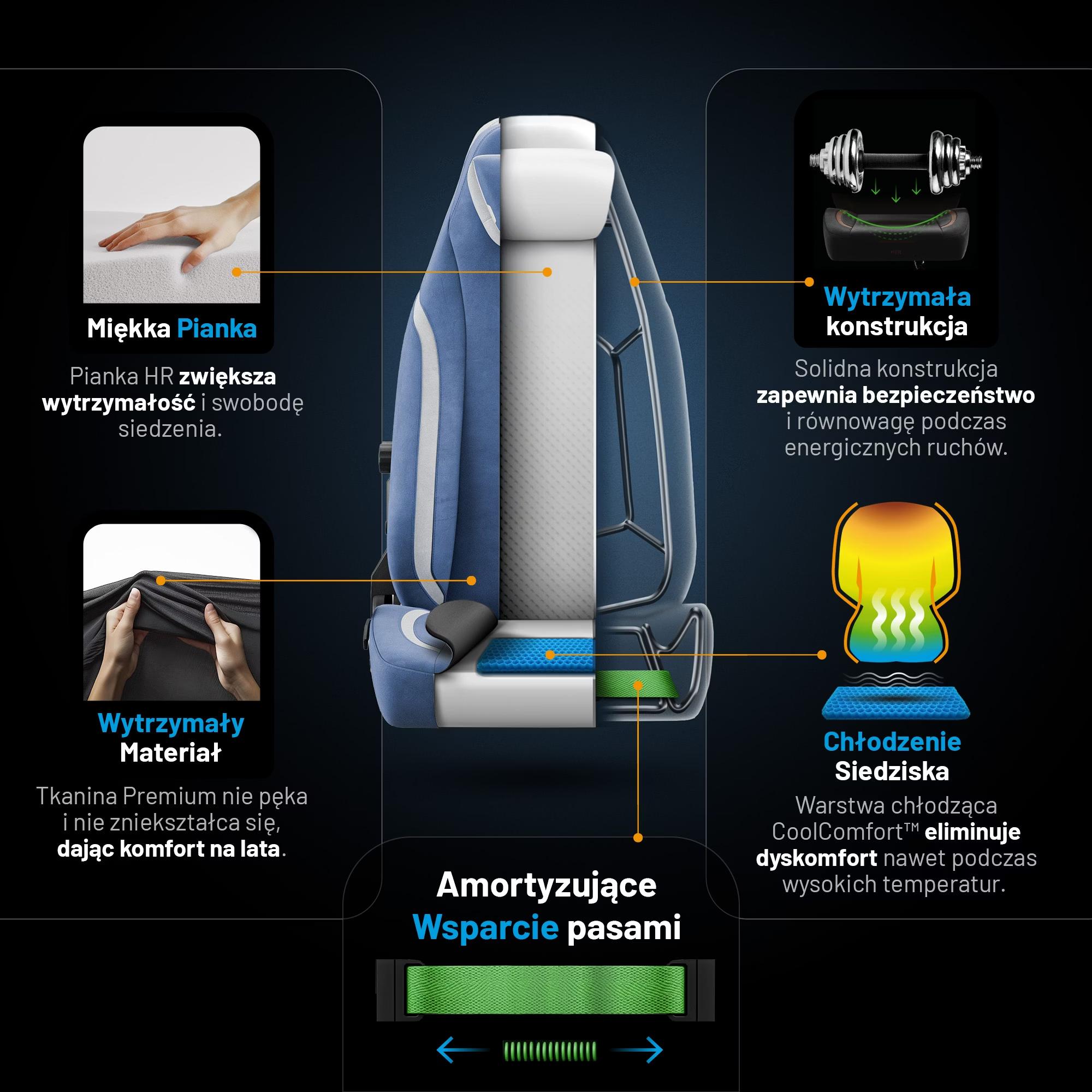 Starannie dopracowana technologia CoolComfort™ gwarantuje orzeźwiający komfort już od pierwszych chwil spędzonych w fotelu. Siedzisko zapewnia niezakłócony przepływ powietrza i wyjątkową świeżość nawet przy wysokich temperaturach. W fotelu X.Eye Prime przetrwasz każde warunki!