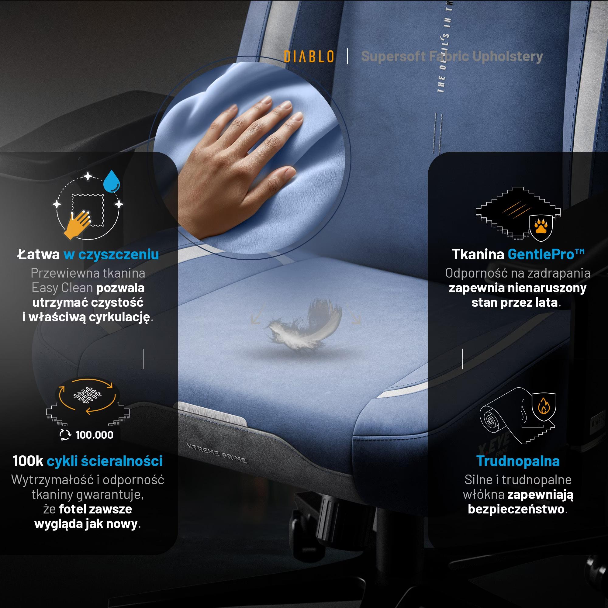 Godziny siedzenia w fotelu doprowadzają Cię do granic zmęczenia i wywołują ból pleców? Przez to spada Twoja wydajność w grze, a praca zdalna staje się męczarnią? To znak, że pora zmienić fotel i postawić na jakość. Jeśli szukasz rozwiązania łączącego najwyższy komfort ze świetnym wyglądem, poznaj fotel gamingowy Diablo X.Eye Prime. To fotel, który nigdy Cię nie zawiedzie i w każdej chwili pomoże przyjąć ergonomiczną pozycję przy komputerze.