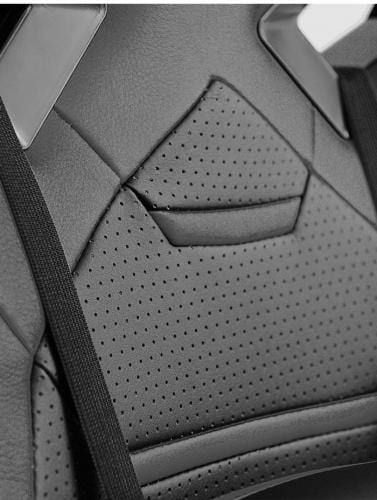 Obicie fotela wykonano z łączonych materiałów dla jeszcze lepszego efektu. Część tekstylna zapewnia optymalną cyrkulację powietrza i najwyższy komfort użytkowania nawet podczas letnich upałów. Elementy obicia, które wykonano ze skóry ekologicznej są gładsze, łatwe w czyszczeniu i niezwykle efektowne.