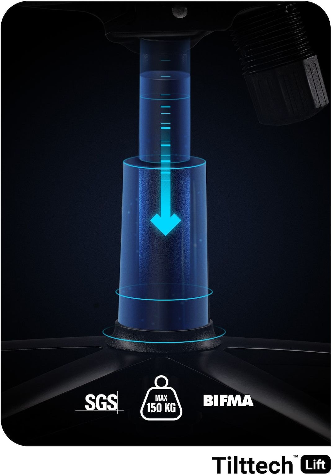 Dopasowanie fotela do sylwetki i poziomu biurka to gwarancja wygodnej, stabilnej i beziecznej pozycji, dlatego wyposażyliśmy X-Gamera w mechanizm Tilttech™ Butterfly. Z tym niezawodnym systemem w kilka chwil ustawisz odpowiednią wysokość siedziska.