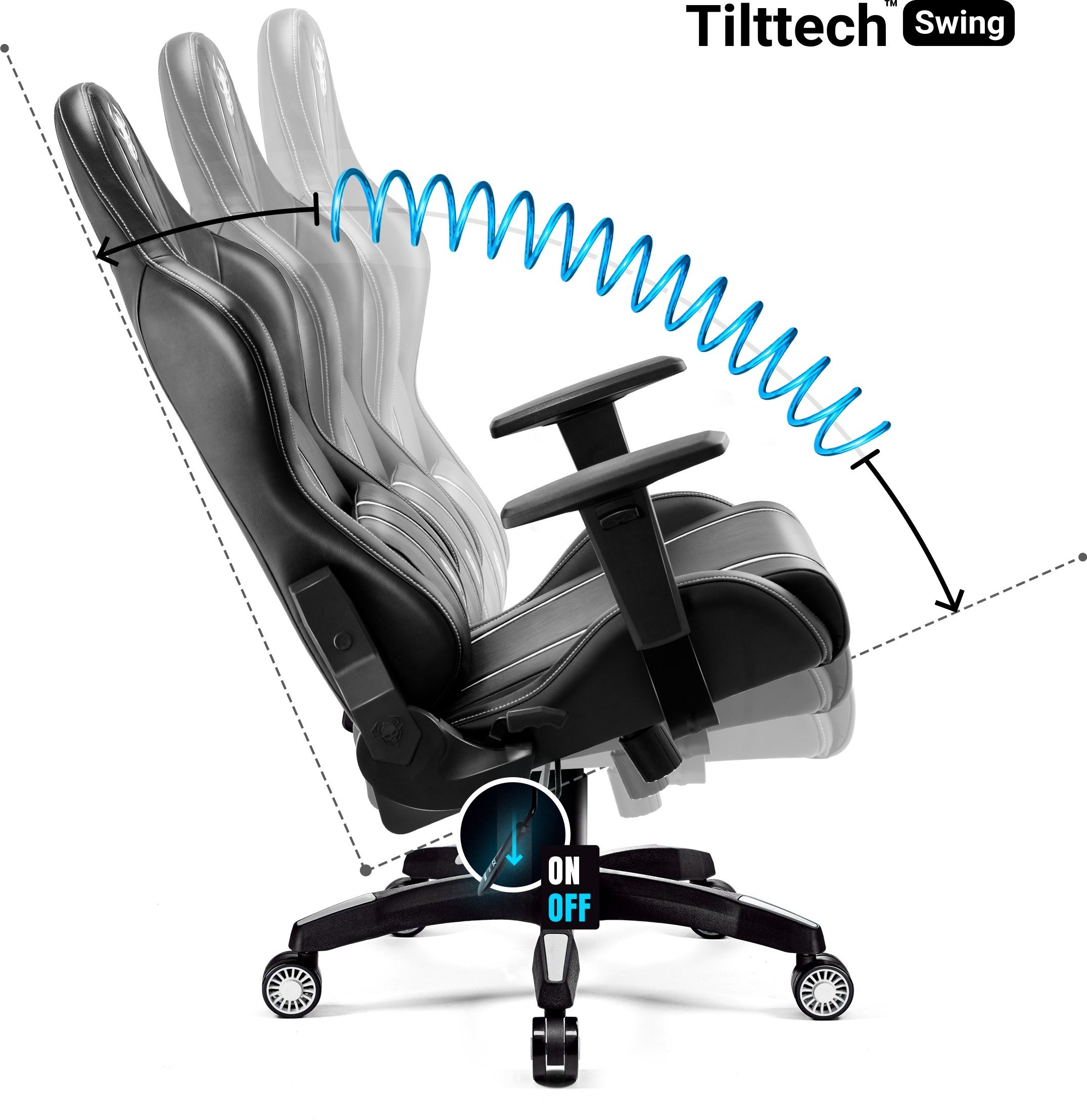 Nowoczesna regulacja Tilttech™ Butterfly sprawi, że z łatwością dopasujesz wysokość siedziska odpowiednią do wzrostu i poziomu swojego biurka. Pozwoli Ci to zachować niezbędny komfort podczas codziennej pracy, nauki lub rozrywki przed ekranem komputera. Dodatkowo wbudowany system Tilttech™ Swing daje możliwość bezpiecznego, relaksującego bujania! Oparcie możesz teraz rozłożyć nawet do 140° i w dowolnym punkcie zablokować. Czeka Cię zupełnie nowy wymiar komfortu!