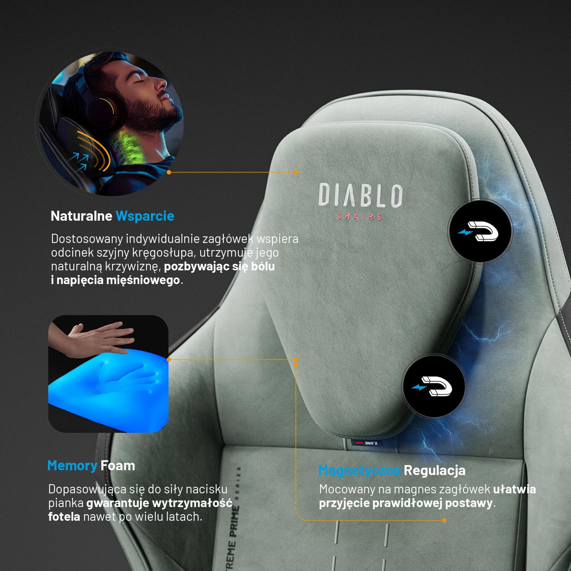 Zdarza Ci się zapomnieć o całym świecie i dać pochłonąć gamingowej rozgrywce? Jeśli tak, to na bank odczułeś nie raz uporczywy ból pleców i sztywny kark. Z pomocą przychodzi fotel gamingowy Diablo X.One Prime! Przemyślany w każdym detalu fotel to Twój niezawodny kompan podczas godzin spędzanych przy komputerze – podczas gry lub pracy. Postaw na ergonomię i styl klasy premium!