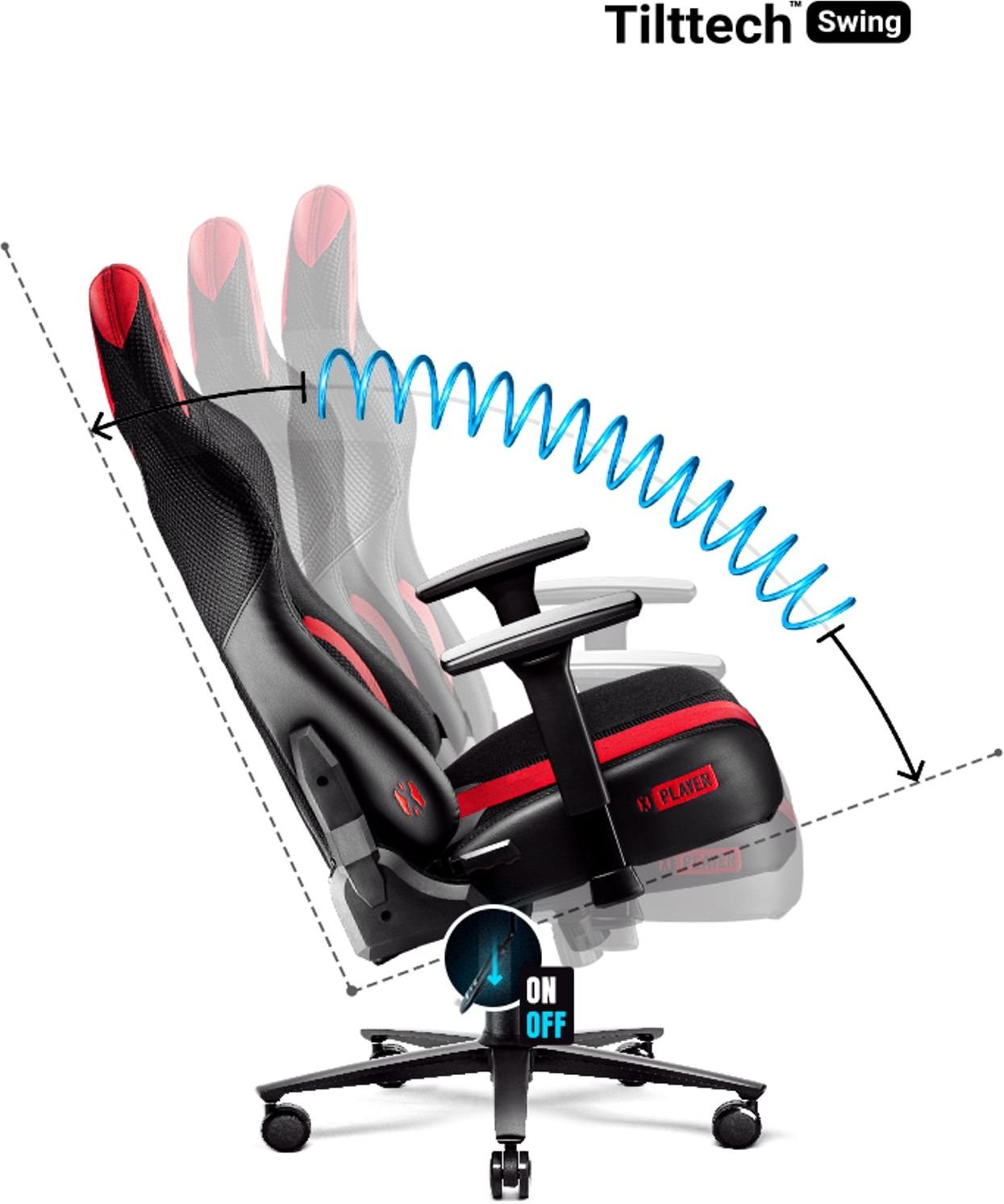 Regulację wysokości fotela względem wzrostu umożliwia system Tilttech™ Butterfly. Właściwa regulacja sprawi, ze za każdym razem przyjmiesz komfortową i ergonomiczną pozycję. Odpowiedni kąt nachylenia oparcia dopasujesz z mechanizmem Tilttech™ Gear, a komfort i mnóstwo dodatkowej przyjemności zapewni Ci funkcja bujania z systemem Tilttech™ Swing.