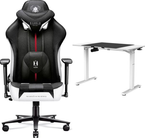 Fotel Diablo Chairs X-PLAYER 2.0 King Size Czarno-biały + EGON 1100 Białe 110 cmx60 cm