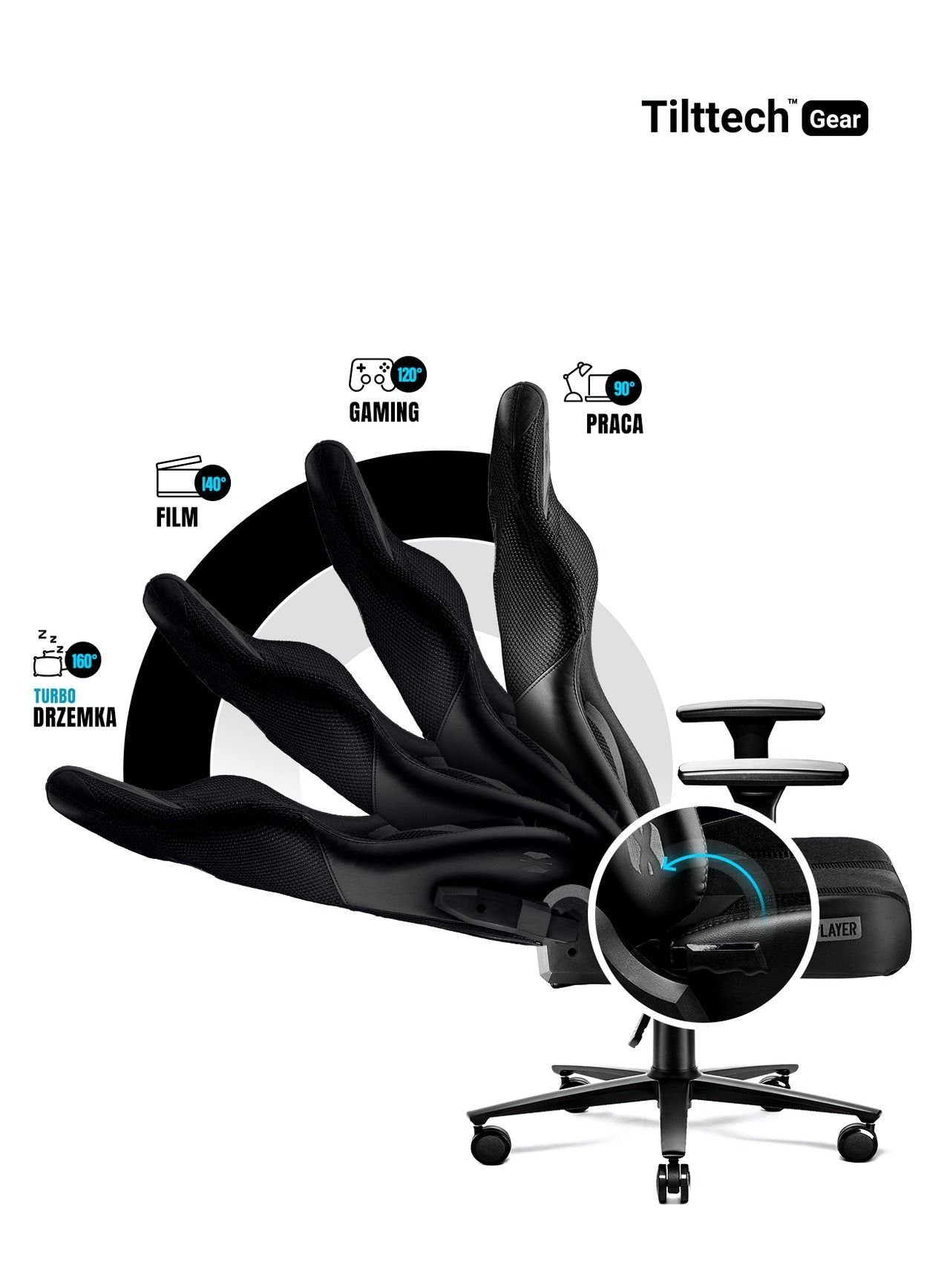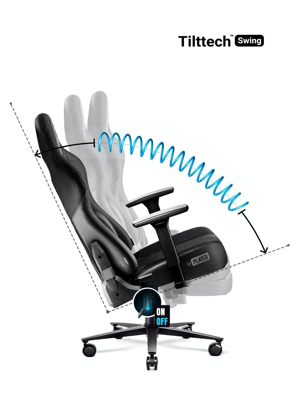 Dodatkowy komfort zapewni Ci odpowiednia regulacja fotela względem poziomu biurka oraz Twojego wzrostu i sylwetki. Mechanizm Tilttech Butterfly pozwala dopasować wysokość siedziska, a system Tilttech Gear umożliwia regulację kąta nachylenia oparcia. Dodatkowo mechanizm Tilttech Swing zapewni Ci wiele dodatkowego relaksu, gdyż pozwala na przyjemne bujanie się w fotelu.