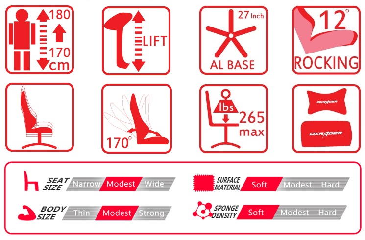 Fotele komputerowe DXRacer to nie tylko unikalny wygląd, ale przede wszystkim ergonomia i komfort pracy. Ergonomiczny projekt zapewnia możliwość ustawień fotela w różnych płaszczyznach. DXRacer zapewni Ci komfort, niezależnie od wybranej pozycji. Długotrwała praca przy komputerze lub zabawa wymagają odpowiednio wygodnego fotela z możliwością ustawień w różnych płaszczyznach. Tylko wtedy zapewnimy sobie komfort niezależnie od wybranej pozycji i bez zmęczenia będziemy mogli cała swoją energię poświęcić wykonywanym zadaniom. DXRacer dodatkowo pomaga zachować właściwą postawę( kąty) podczas siedzenia przez co możemy skutecznie uniknąć wielu problemów zdrowotnych spowodowanych długotrwałym nadwyrężenia nadgarstka, szyi, barku, ramienia czy odcinka lędźwiowego kręgosłupa i wyeliminować zmęczenie i przewlekły ból. Poza standardowymi funkcjami takimi jak regulacja wysokości fotela czy funkcja bujania mamy możliwość regulacji wysokości podłokietników dostosowując je do swoich potrzeb. Specjalne ukształtowanie fotela w obszarach ramion, talii i pośladków zapewnia ścisłe dopasowanie do kształtów ciała co gwarantuje najlepszy komfort uzytkowania i jest jedną z zalet fotela DXRacer. Fotel DXRacer oferuje poczucie bycia owiniętym, dbając o każdą cześć ciała tym samym zwiększając znacznie komfort pracy. Ten fotel wzbudzi twoje emocje i sprawi, że w swoim biurze wreszcie odpoczniesz. DXRacer jest dla ludzi, którzy używająkomputer na co dzień. | |
