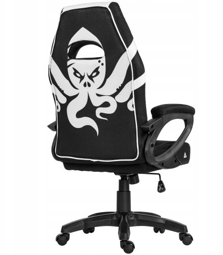 Fotel obity jest wysokiej jakości tkaniną w kolorze czarno-białym, co nie tylko nadaje mu elegancki wygląd, ale także zapewnia wentylację oraz łatwość w czyszczeniu. Dzięki temu fotel KRAKEN VESPER jest zarówno stylowy, jak i praktyczny w codziennym użytkowaniu.