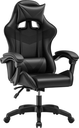 Fotel gamingowy czarny z poduszką lędźwiową i zagłówkiem do biurka