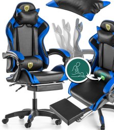 FOTEL GAMINGOWY Z PODNÓŻKIEM NIEBIESKI CZARNY KUBEŁKOWY BIUROWY OBROTOWY REGULOWANY NOWOCZESNY MASAŻER DLA GRACZA DZIECI MŁODZIEŻY