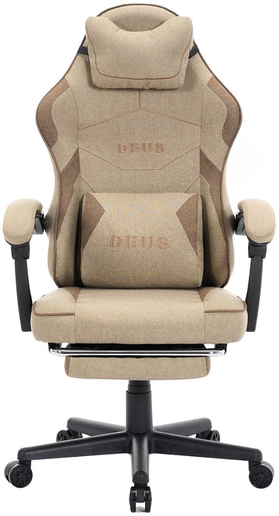 Fotel Gamingowy z tkaniny DEUS Edge Beige, podnóżek