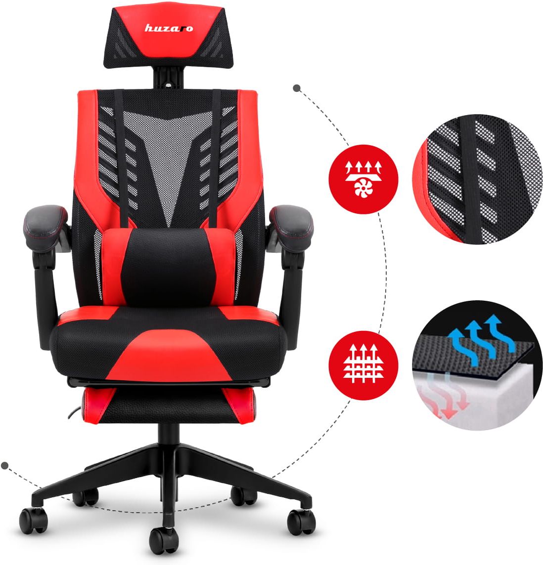 Fotel Gamingowy HUZARO COMBAT 4.2 to najnowsze rozwiązanie dla wszystkich zapalonych graczy i fanów nowych technologii, którzy cenią sobie wygodę podczas wielogodzinnej rozgrywki, czy pracy przy komputerze. HUZARO COMBAT 4.2 wyróżnia się zastosowanym materiałem, który zapewnia najlepszą cyrkulacje powietrza. Fotel można odpowiednio dostosować do użytkownika dzięki szerokiej regulacji wielu elementów, a zadziorny design sprawi, że COMBAT 4.2 wniesie na wyższy poziom Wasze gamingowe stanowiska.
