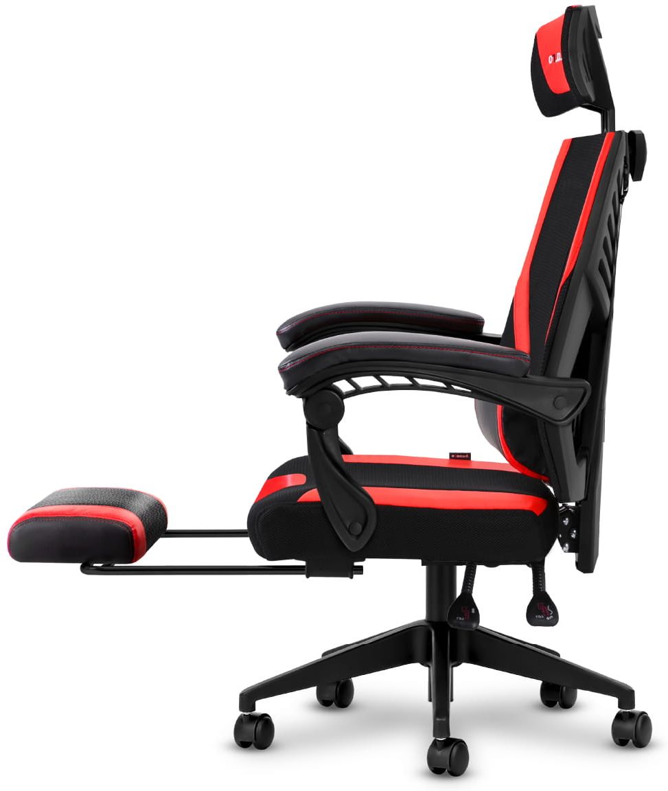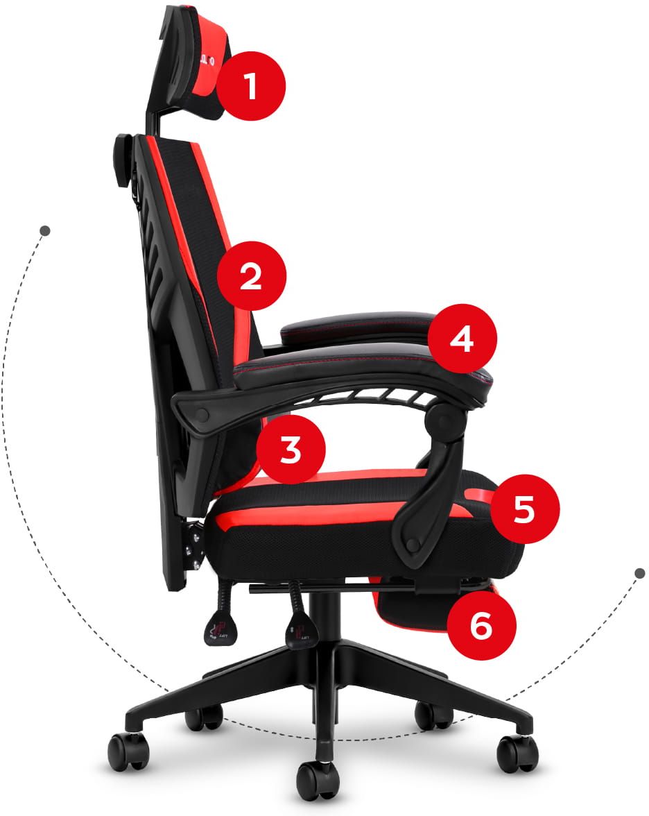 Oczekujesz komfortu i wygody, a może rozgrywka to dla Ciebie moment odprężenia. Rozkładany podnóżek pozwoli wygodnie rozprostować nogi, zrelaksować się i odpocząć. Funkcja podnóżka świetnie sprawdza się również w połączeniu z pochylanym oparciem.