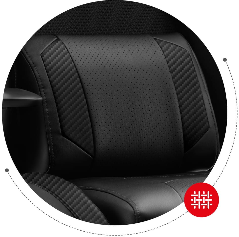 - Połączenie wentylowanego materiału AIR Mesch ze skórą PU HD i Carbon