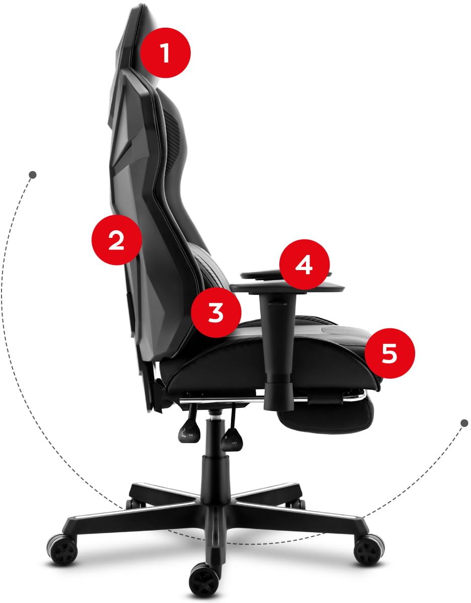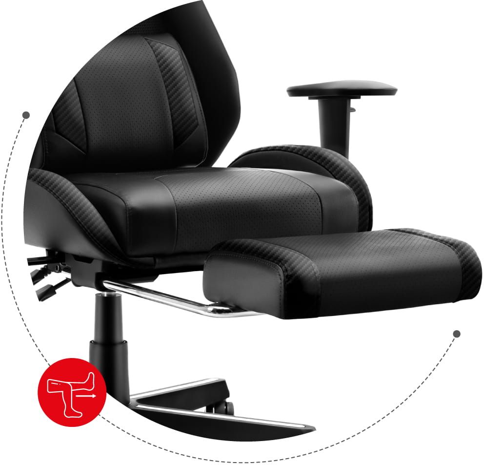 Oczekujesz komfortu i wygody, a może rozgrywka to dla Ciebie moment odprężenia. Rozkładany podnóżek pozwoli wygodnie rozprostować nogi, zrelaksować się i odpocząć. Funkcja podnóżka świetnie sprawdza się również w połączeniu z pochylanym oparciem.