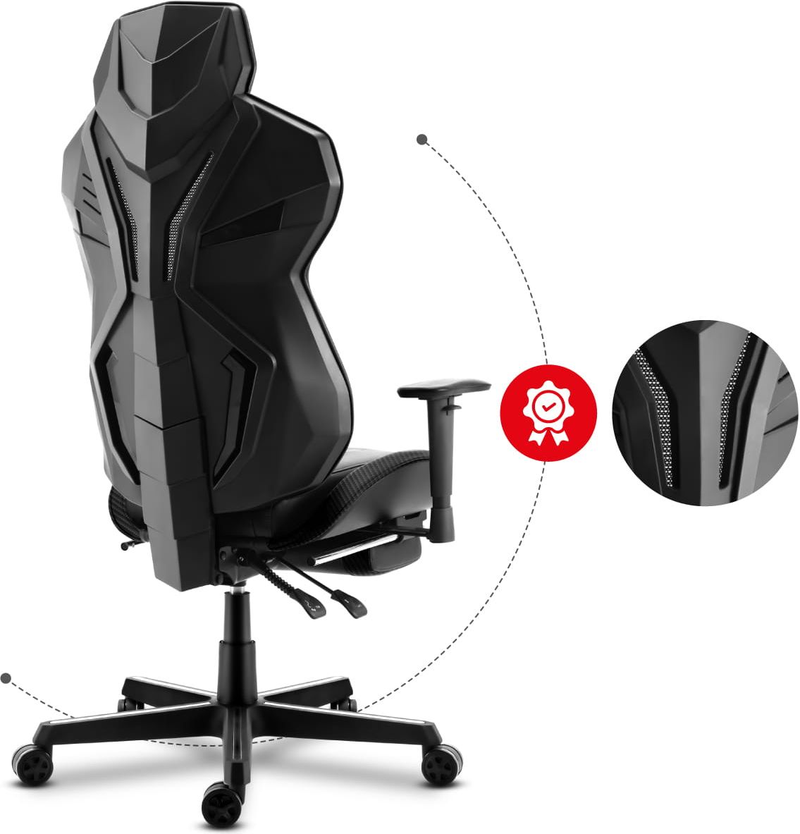 Masywna, solidna obudowa oparcia wykonana z elastycznego materiału Nylon FX, robi niesamowite wrażenie. Wyglądem przypomina pancerz, lub zbroję, dzięki temu fotel zyskuje niezwykle zadziorny design. W obudowie zastosowano specjalne wloty które wspomagają cyrkulację powietrza przez oparcie, co daje użytkownikowi jeszcze większą wygodę i komfort.