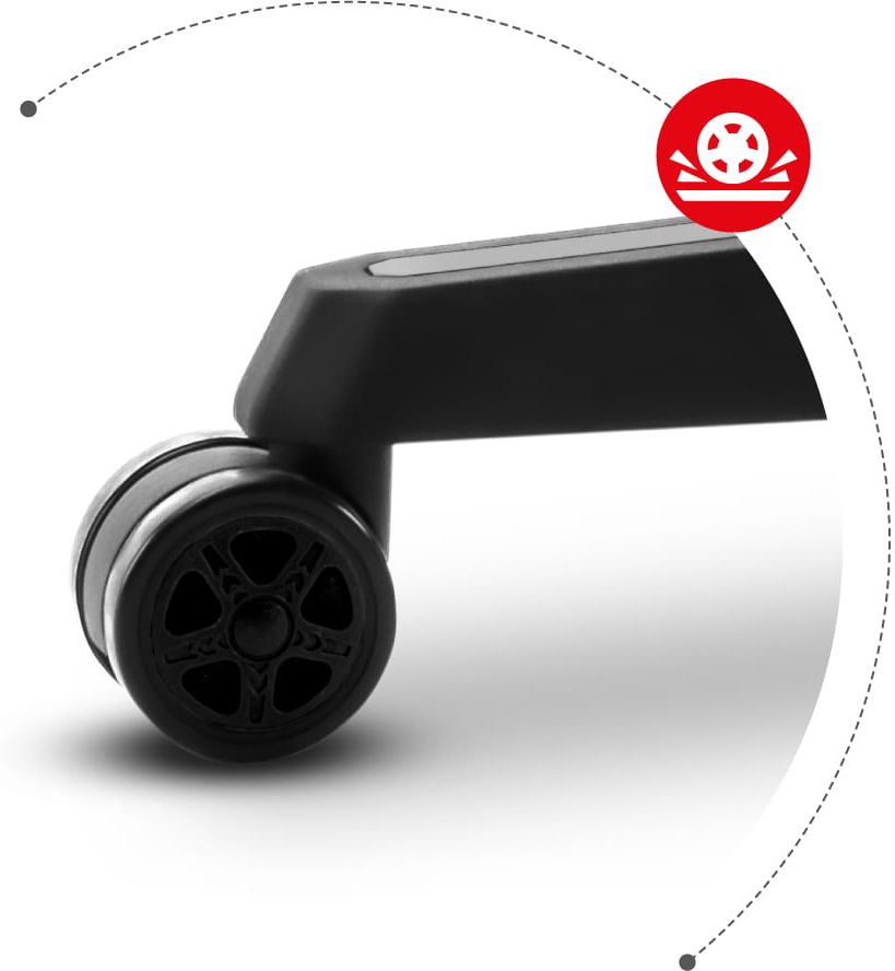 Pięć podwójnych poliuretanowo-kauczukowych kół zapewnia swobodne przesuwanie się na fotelu, a zastosowane materiały chronią podłogę przed zarysowaniami i otarciami.