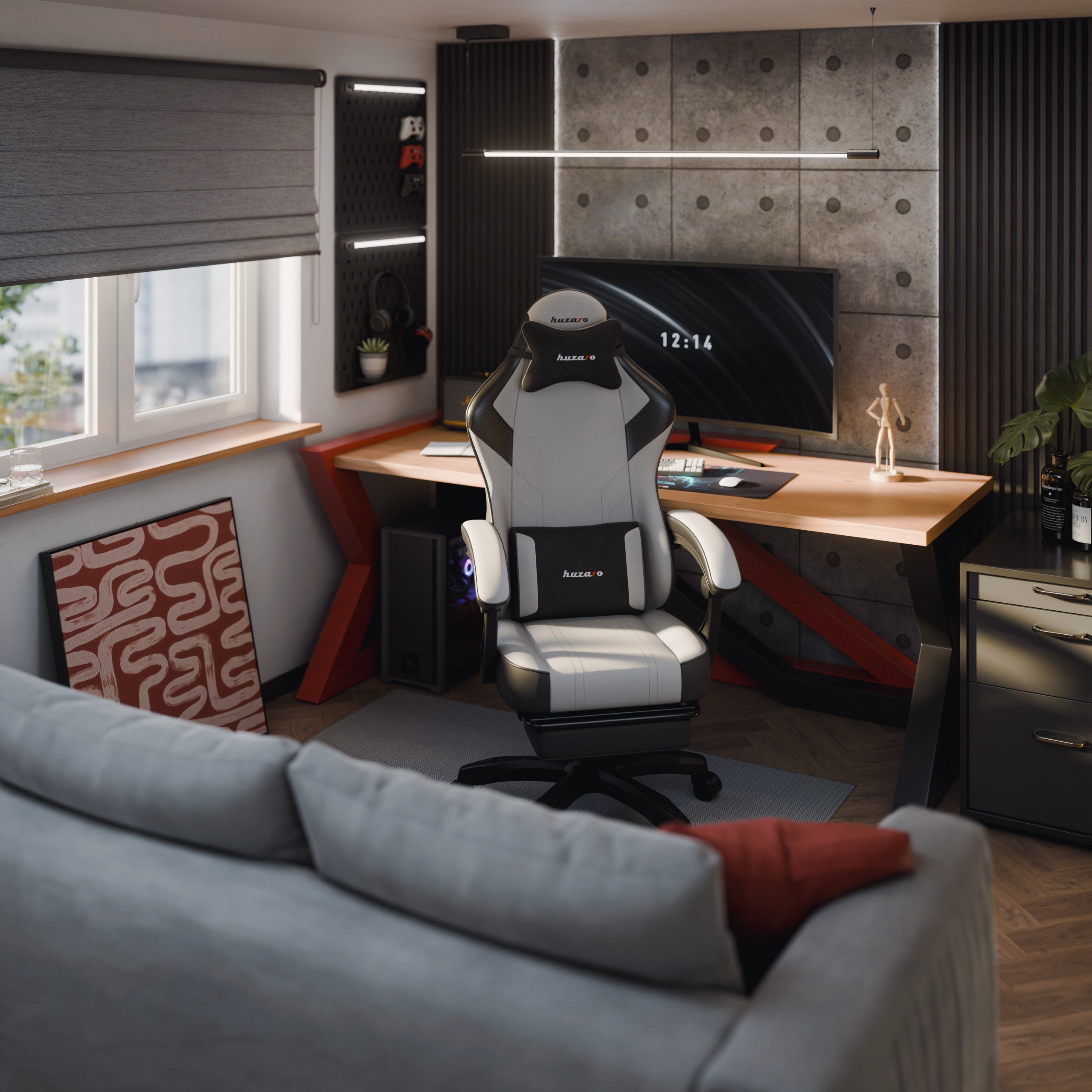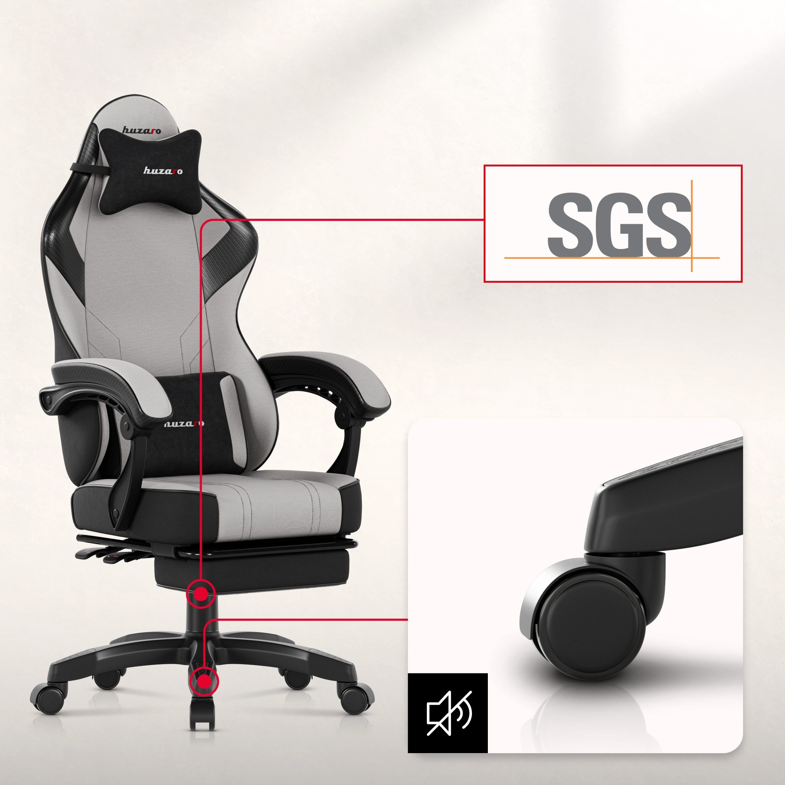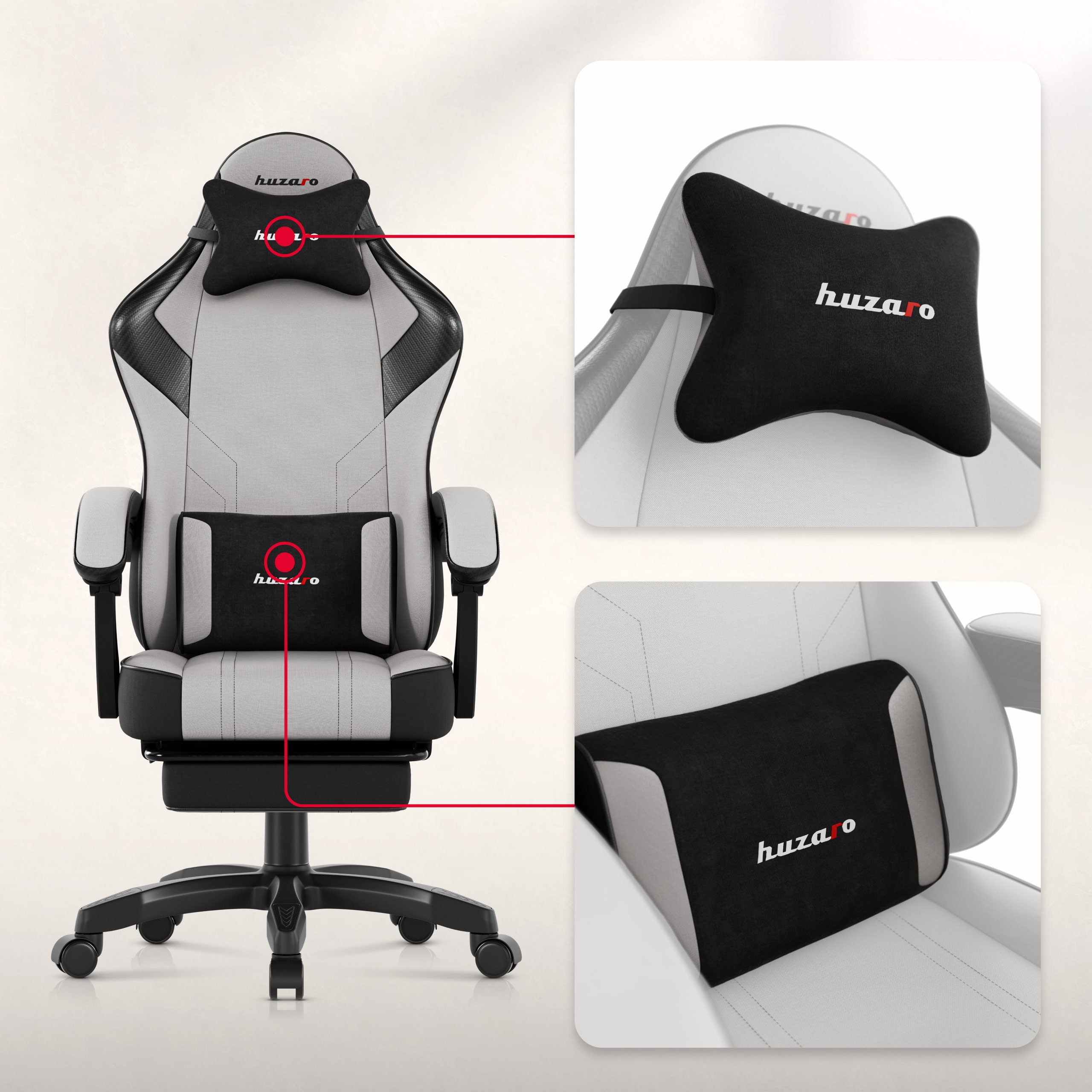 Fotel gamingowy Huzaro Force 3.7 został zaprojektowany z myślą o zapewnieniu maksymalnego komfortu i ergonomii. Wyposażono go w funkcję SeatRest, która umożliwia wygodne pochylanie oparcia, idealne zarówno podczas intensywnej rozgrywki, jak i w chwilach relaksu. W zestawie znajdują się również poduszka lędźwiowa oraz zagłówek, które gwarantują ergonomiczne wsparcie dla kręgosłupa i szyi, minimalizując ryzyko bólu. Miękkie podłokietniki zapewniają komfortowe podparcie dla przedramion, co przyczynia się do zmniejszenia obciążenia barków.