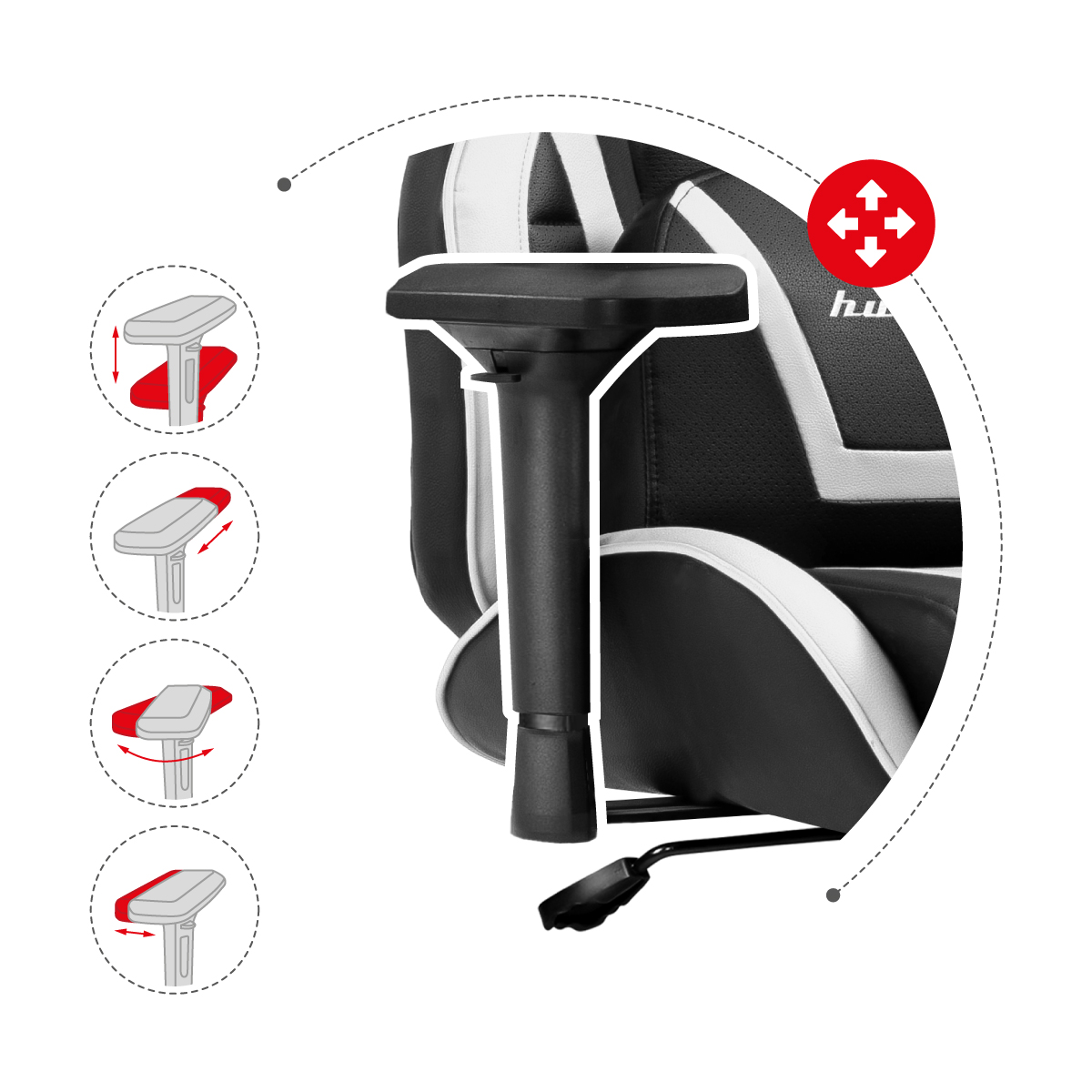 Regulowane podłokietniki można dopasować do własnych upodobań i warunków anatomicznych, dzięki czemu fotel zapewni maksymalny komfort podczas gry i pracy przy komputerze. Podłokietniki z regulacją są ergonomiczne i zaprojektowane z myślą o intensywnym oraz długotrwałym użytkowaniu.