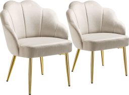 Fotel koktajlowy Hellen, tapicerowany aksamitnym obiciem - kremowy/złoty, Zestaw 2 sztuk