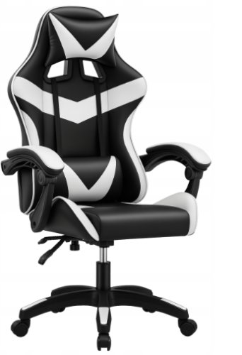 Fotel Mebel Elite Fotel biurowy gamingowy biało-czarny z poduszkami